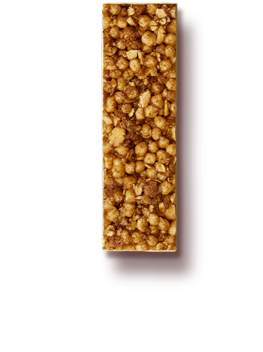 Kakao indeholdende korn krispies 17% (rismel, HVEDEmel, fedtfattig kakaopulver, sødMÆLKspulver 2%, sukker, majsmel, salt), majsflager 15% (majs, sukker, salt, BYG maltekstrakt), kokosfedt, glukosesirup, glukose-fruktosesirup, oligofruktose, dextrose, fuldkornsHAVREflager 5%, honning 5%, sukker, palmeolie, sødMÆLKspulver 3%, skummetMÆLKspulver 3%, stabilisator: glycerol, karamelliseret sukkersirup, salt, emulgator: lecithiner, naturlige aromaer.