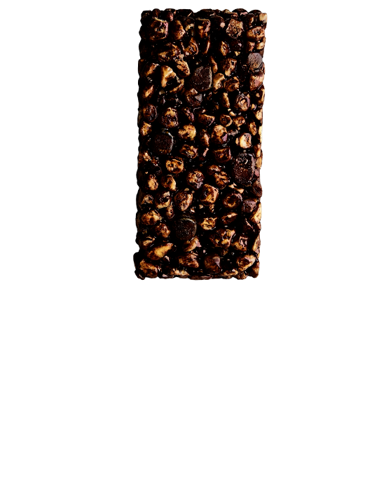 Hvedeproteinkrispies (hvedeprotein, hvedemel), glukosesirup, glukosefruktosesirup, kokosolie, kakaosmåkagestykker 8% (hvedemel, sukker, palmeolie, fedtfattigt kakaopulver, hvedestivelse, hvedegluten, tapiokastivelse, glukosefruktosesirup, hævemidler (natriumbikarbonat, ammoniumbi - karbonat) salt), mælkeprotein, palmeolie, dekstrose, flødepulver 3,6%, ristede jordnødder, kakaomasse, fedtfattigt kakaopulver, sukker, magnesiumcitrat, naturlig aroma, salt, emulgator (lecitin).