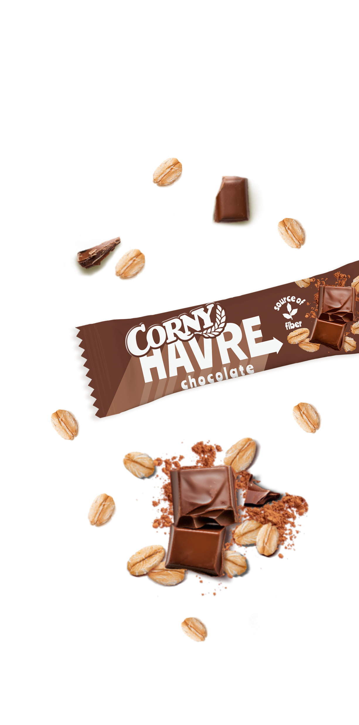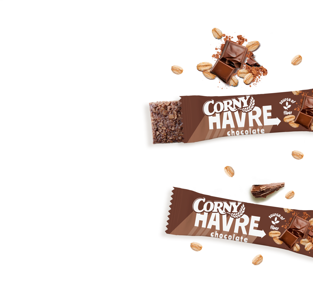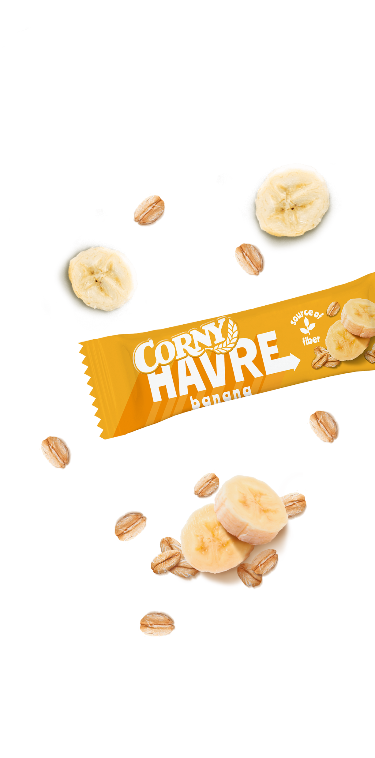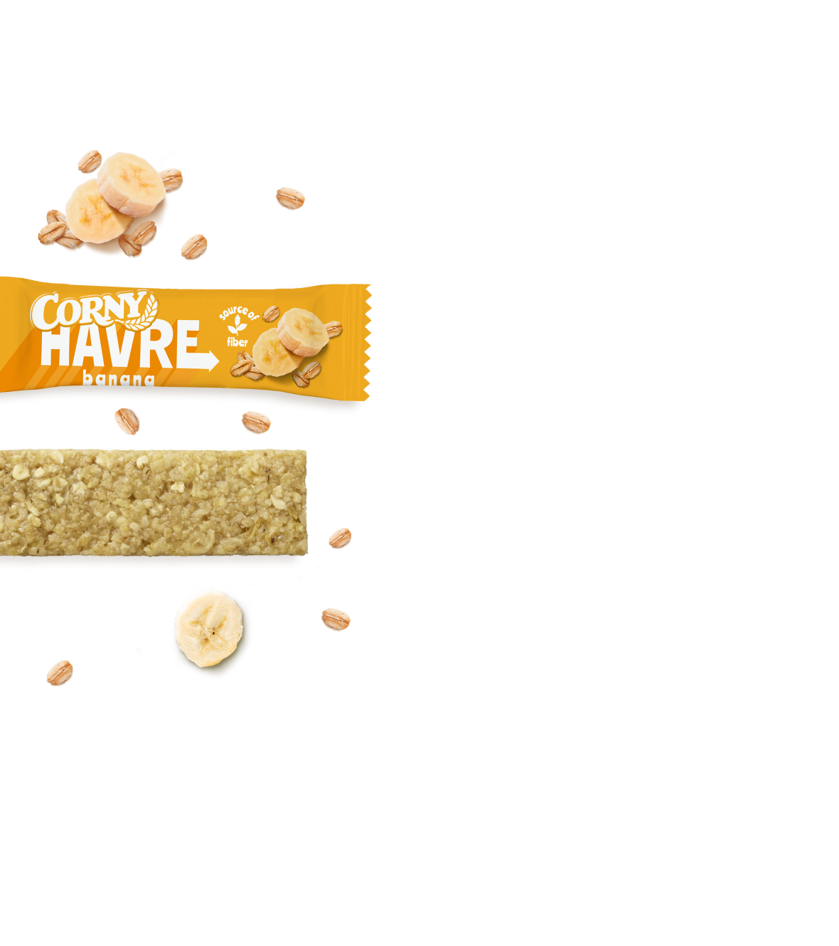 Corny Havre er den perfekte snack til dig, der vil have noget både lækkert og mættende. Barerne er bløde, velsmagende og rige på fibre – de er nemlig smækfyldt med fuldkornshavreflager. Du kan vælge mellem to smagsvarianter- chokolade og banan. Prøv dem begge og find din favorit!